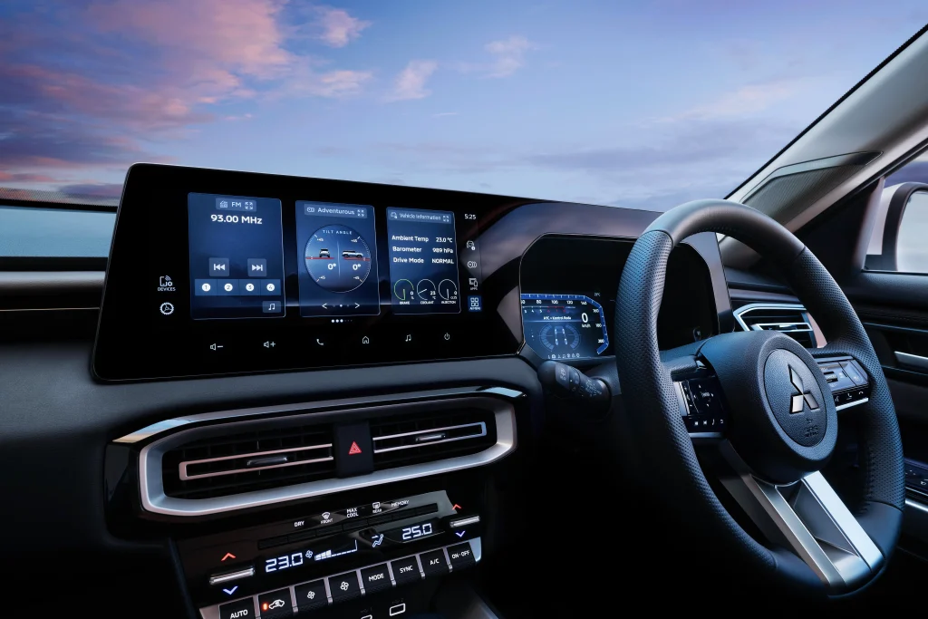 Tak hanya di sektor hiburan, Mitsubishi juga memperhatikan aspek kenyamanan digital. Tersedia sistem pengisian daya nirkabel (wireless charger) di konsol tengah, auto climate control tiga zona, serta fitur hands-free power tailgate yang memungkinkan pintu bagasi terbuka otomatis hanya dengan mengayunkan kaki di bawah bumper belakang — fitur yang sangat membantu saat membawa banyak barang belanjaan.