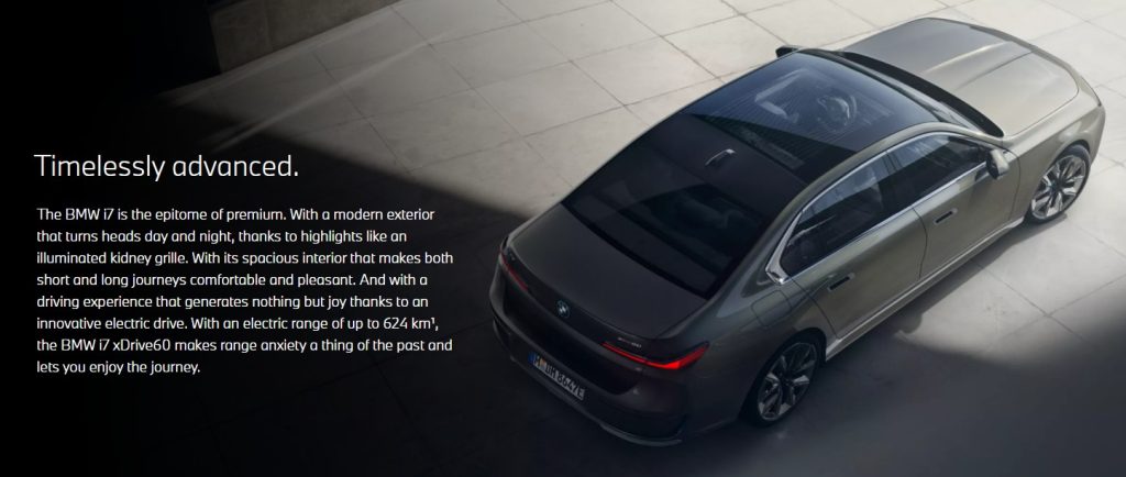 BMW i7 berada di puncak hierarki kendaraan listrik BMW. Model ini menempati segmen: