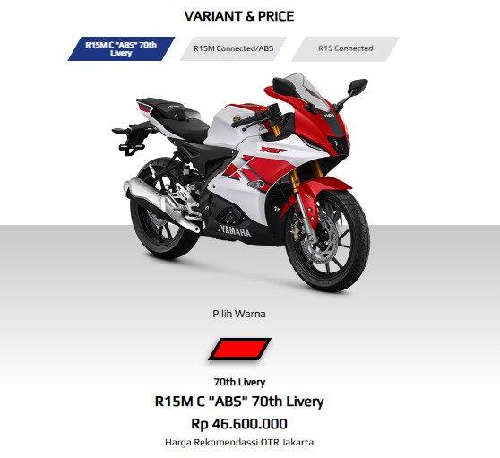 Yamaha R-15 hadir sebagai motor sport fairing yang membawa semangat balap ke jalan raya. Terinspirasi dari jajaran motor R-Series Yamaha, R-15 dirancang untuk memberikan pengalaman berkendara sporty dengan desain agresif, performa mesin modern, serta handling yang presisi. Motor ini menjadi pilihan populer bagi pengendara yang menginginkan sensasi racing dalam penggunaan sehari-hari.